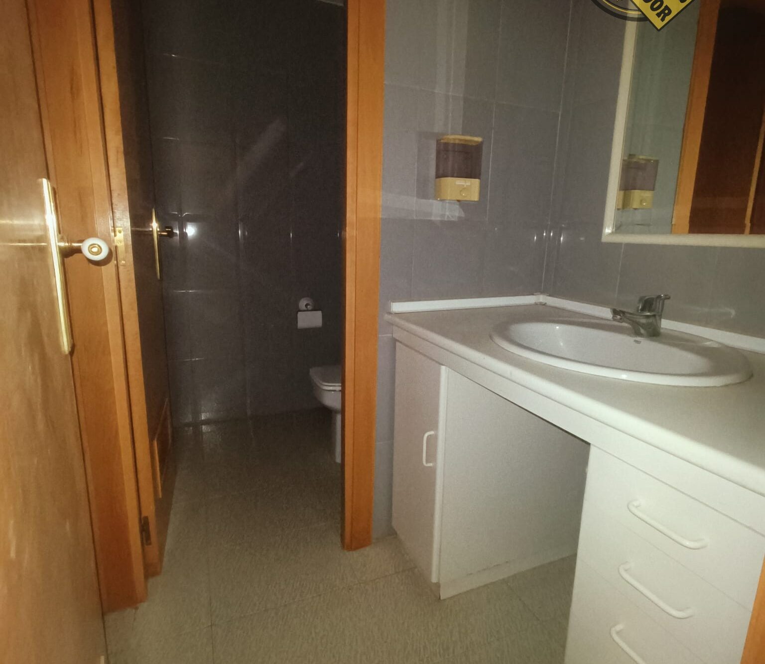 En la parte trasera dispone de una sala en planta baja de unos 40 m² y una planta primera de la misma superficie, donde se encuentran los aseos, un despacho y zonas comunes