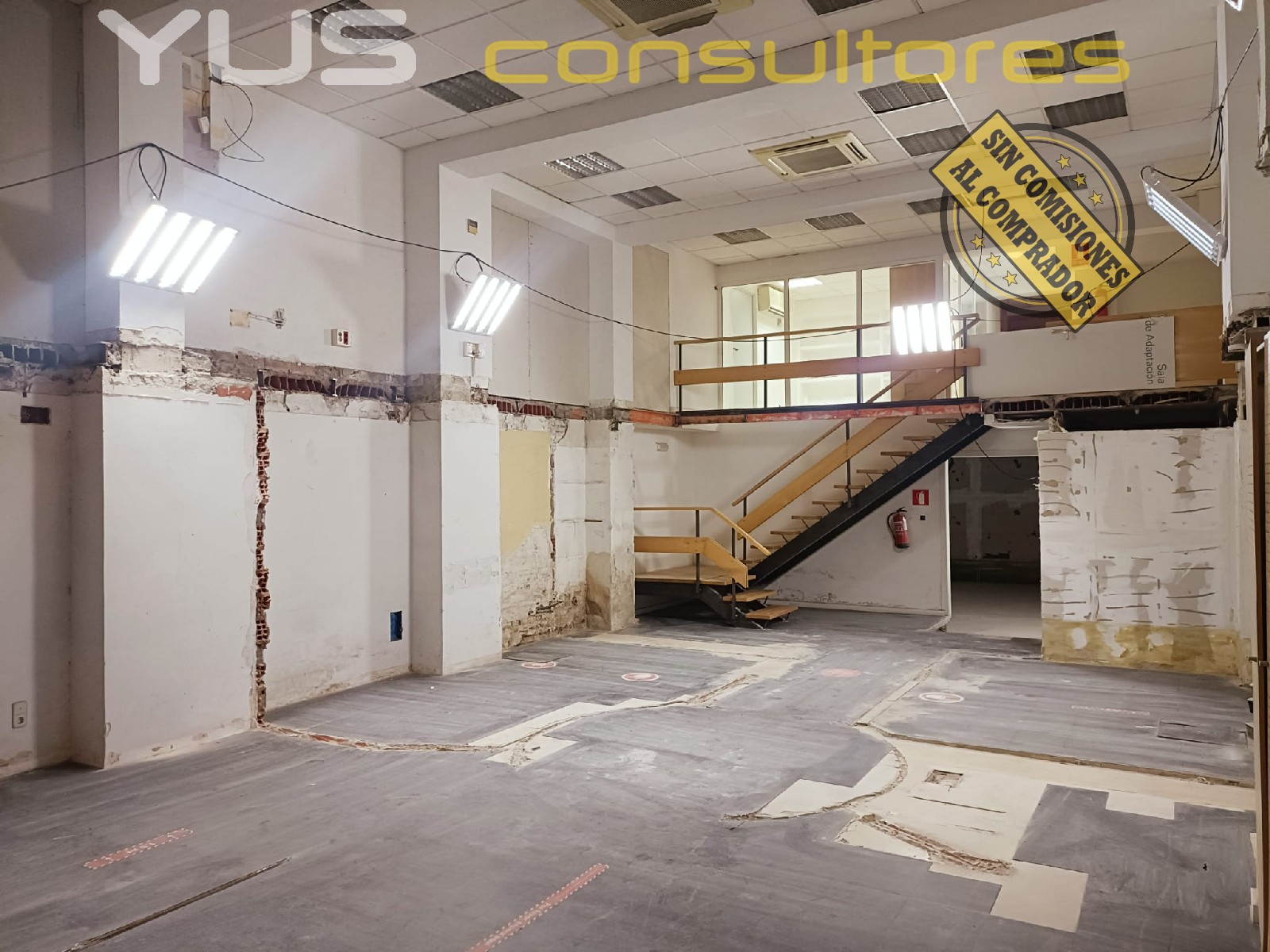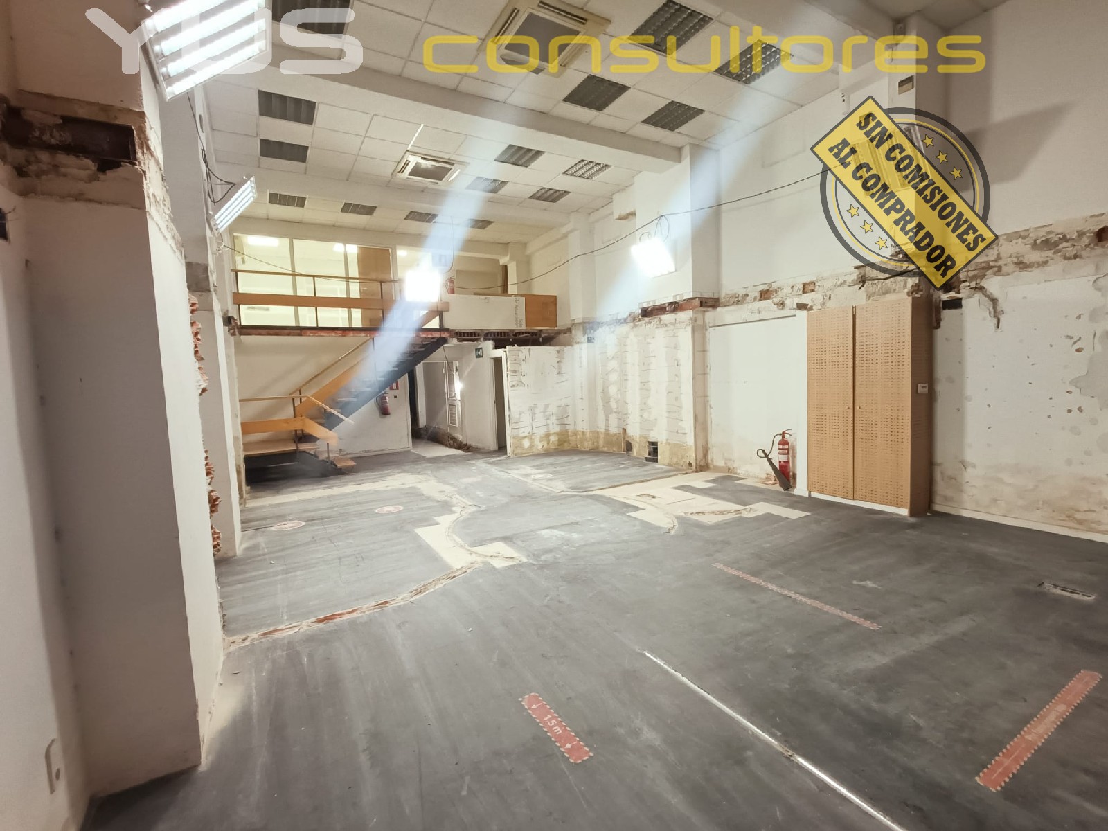 El local cuenta con una gran sala principal de aproximadamente 80 m², con una altura de 5 metros, lo que le aporta mucha amplitud y luminosidad. Recientemente se ha eliminado el altillo intermedio, quedando el espacio completamente diáfano y listo para adaptar a cualquier actividad.